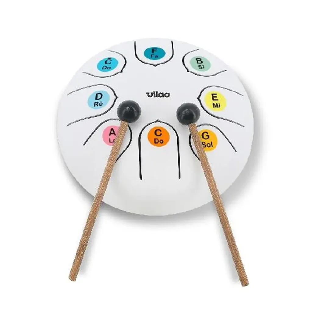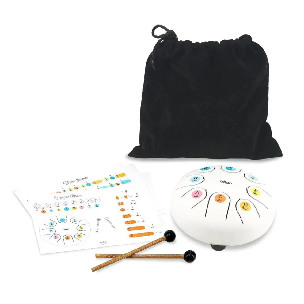 Tambour a langues xylophone: Cet instrument de percussions en métal au son zen et apaisant serait d'origine Azteque. Comme un xylophone, chaque langue en métal produit un son unique. Accorde en Do majeur et dote d'une octave, notre tongue drum permettra aux enfants de s'initier a la musique tout en s'amusant. Notre équipe d'experts en musique a crée des partitions spécialement pour cet instrument afin de débuter avec quelques airs connus.